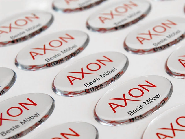Naklejki wypukłe lub inaczej mówiąc resin domed stickers, są niezastąpione jako trwałe i estetyczne oznaczenia na sprzęcie AGD i RTV.
