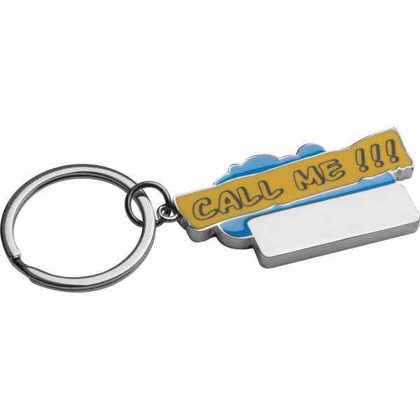 Brelok metalowy z kolorowym, lakierowanym przodem.