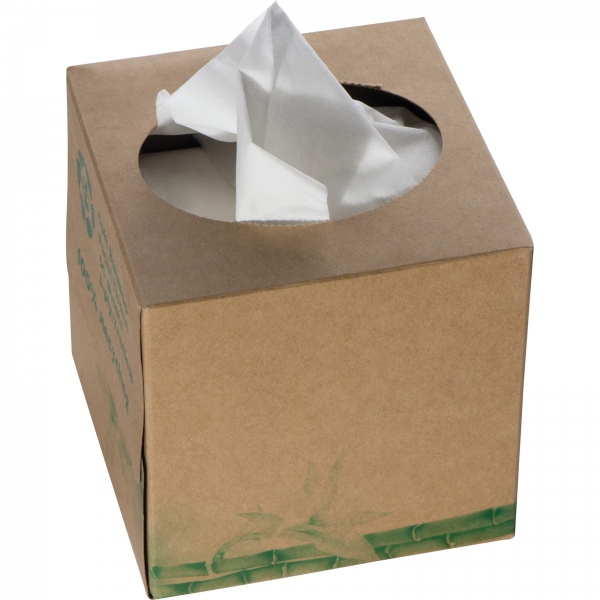 Chusteczki 3‑warstwowe (60 szt.) umieszczone w ekologicznym pudełku, wykonanym z papieru pochodzącego z recyklingu.
