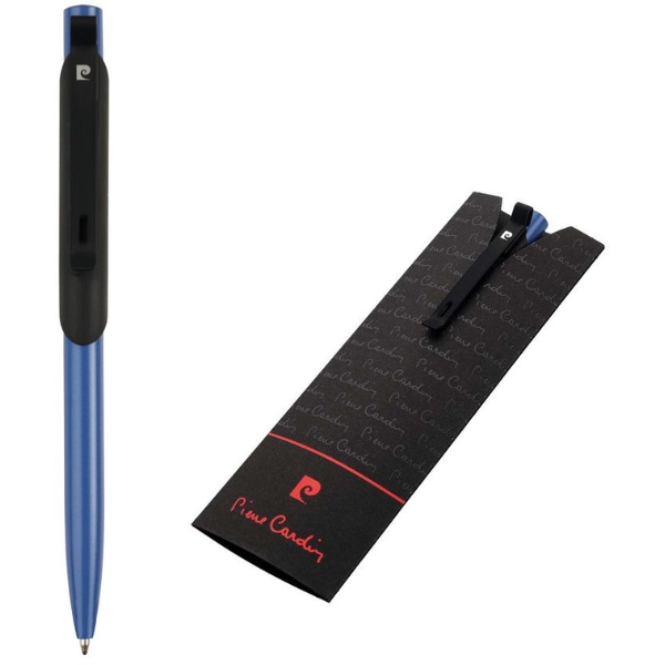 Matelowy długopis Pierre Cardin o niepowtarzalnym designie, z czarnym gumowanym elementem pod klipsem. Wyposażony w niebieski wkład z końcówką 1 mm. Długopis pakowany w eleganckie etui, posiada certyfikat autentyczności.