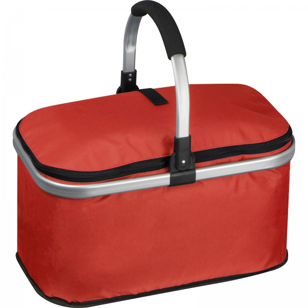 Koszyk na zakupy wykonany z poliestru z rączką z aluminium. Można w nim nosić nawet 15 kg. Warstwa wewnętrzna z materiału termoizolacyjnego utrzymuje temperaturę. Możliwość złożenia aluminiowego uchwytu lub całego koszyka.
