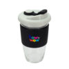 Kubek o pojemności 454 ml wyposażony jest w silikonową pokrywkę z praktycznym, zamykanym ustnikiem, który skutecznie chroni przed rozlaniem napoju. Wykonany z wysokiej jakości szkła oraz trwałego i nietoksycznego tworzywa sztucznego, jest bezpieczny w kontakcie z żywnością. Można go łatwo myć w zmywarce oraz używać w mikrofalówce, co dodatkowo podnosi jego funkcjonalność. Pasuje do większości uchwytów samochodowych, co czyni go niezastąpionym akcesorium dla każdego, kto wybiera się w podróż. Dodatkowym atutem jest silikonowy rękaw, który chroni przed poparzeniem nawet przy wysokich temperaturach napojów.