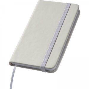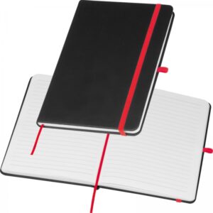 Notes A4 w linie (80 kartek) z okładką z tworzywa sztucznego, zakładką i miejscem na długopis. Zamykany na gumkę.
