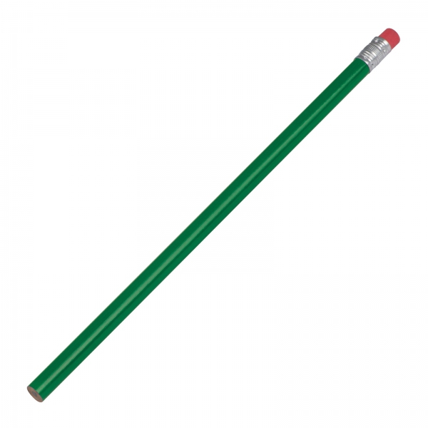 Drewniany ołówek HB z gumką do ścierania, niezatemperowany.