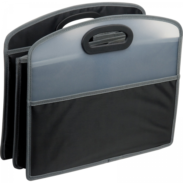 Torba z poliestru, dzięki solidnym ściankom po rozłożeniu zamienia się w dużą torbę na zakupy do samochodu.