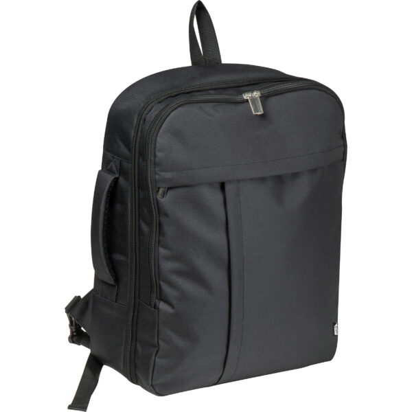 Plecak podróżny otwierany jak walizka, wykonany z RPET. Plecak posiada przegródkę na laptopa oraz pojemną komorę główną. Szelki można ukryć wewnątrz plecaka, dzięki czemu zmienia się w torbę.